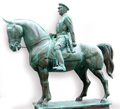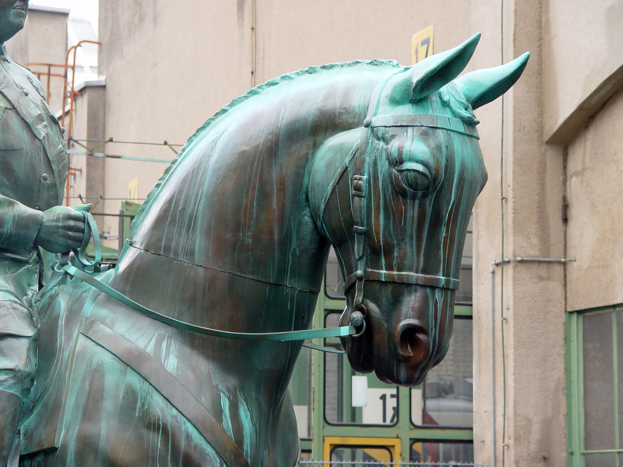Durch die Bemalung sehen Pferd und Reiter aus, als seien sie aus Bronze.