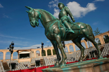 Die Theaterplastik „Reiterdenkmal“ entstand nach unserem Entwurf im Auftrag des Bühnenbildners Karel Spanhack für eine Inszenierung der Oper „Carmen“ der Freilichtoper Schenkenberg in der Schweiz.