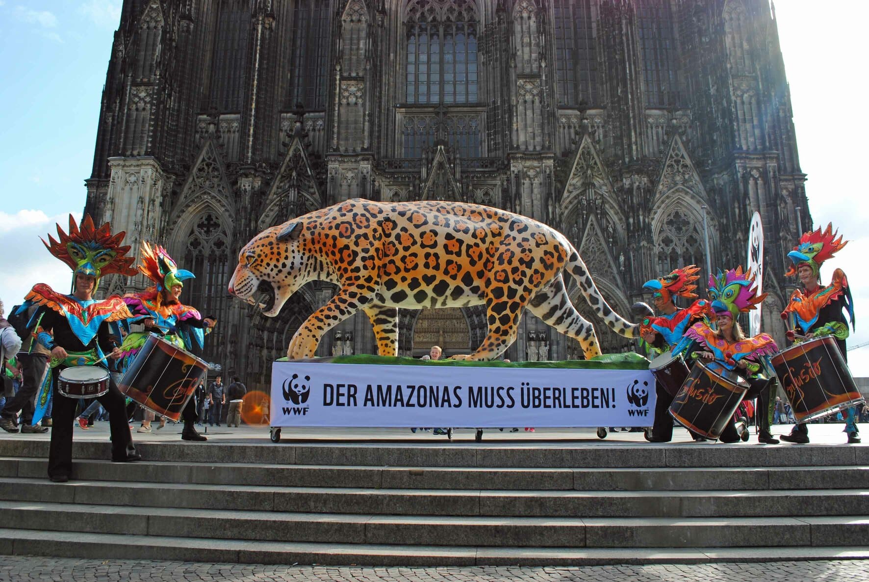 Großplastik Die Großplastik des Jaguars entstand im Auftrag des WWF für eine Protestaktion für den Erhalt des Amazonasgebietes 2015 in Köln. Die Tierplastik wurde aus Maschendraht mit Pappmaché-Kaschur erstellt.190 cm hoch480 cm lang