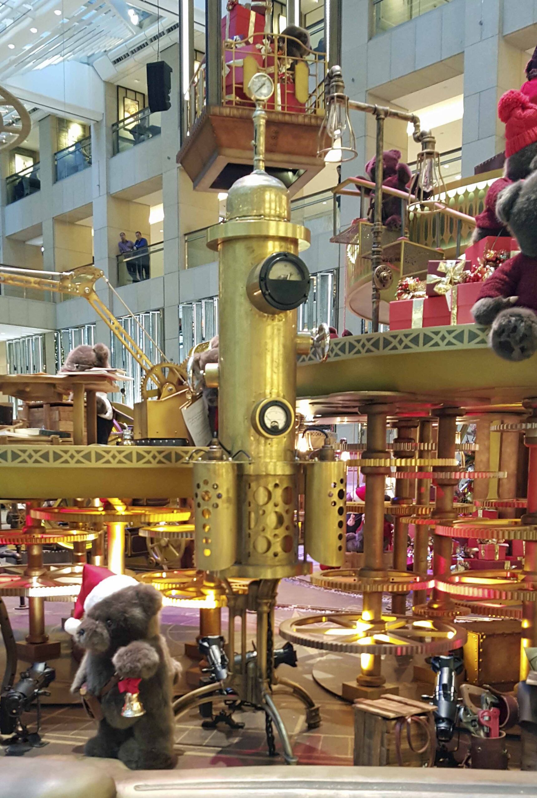 Bei der alljährlichen Weihnachtsdekoration entschied sich die luxuriöse Einkaufsmall in Hong Kong für das Thema Steampunk.