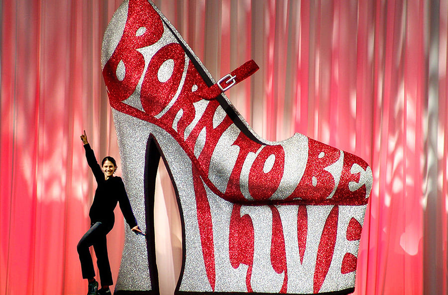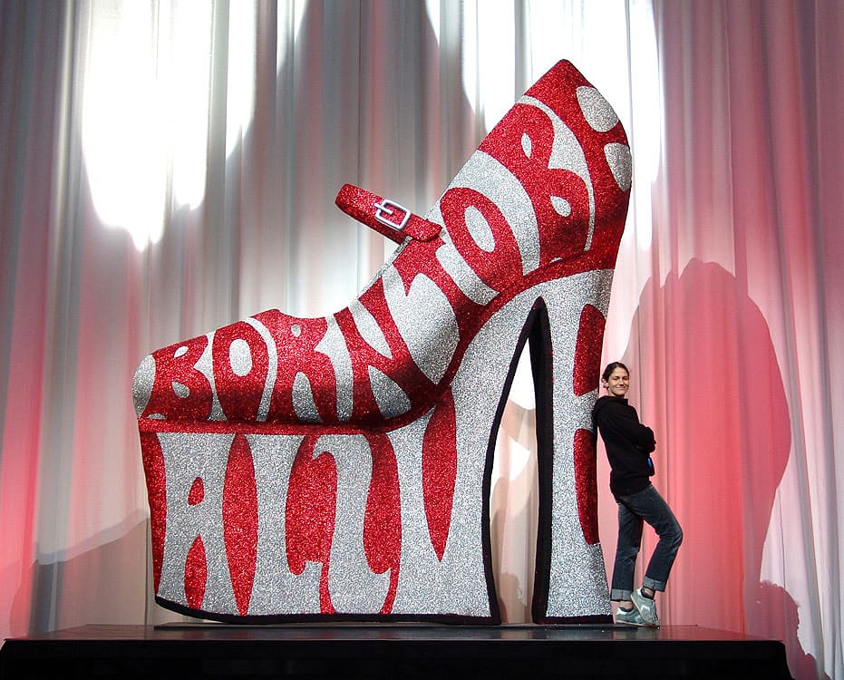 Die halbplastischen Schuhe standen zu beiden Seiten auf der Bühne.