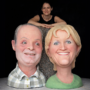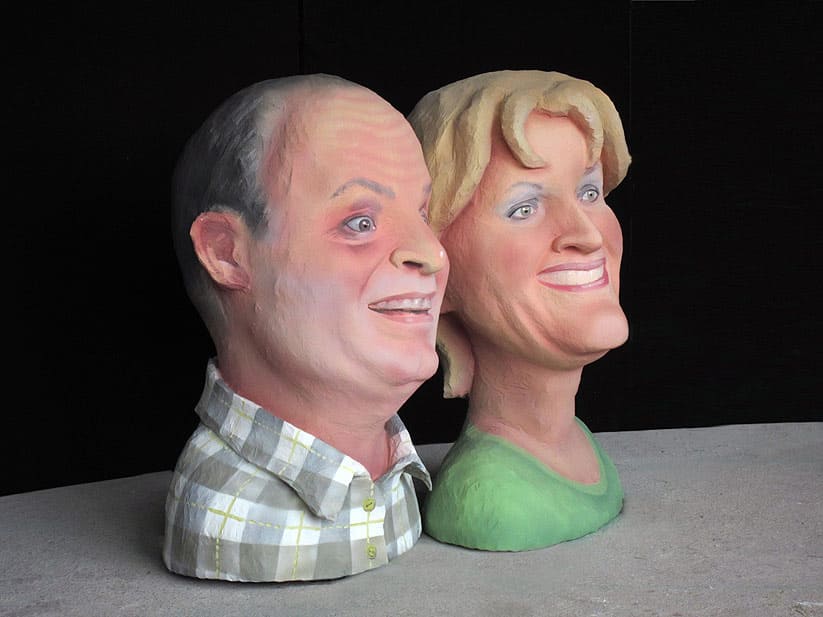 Plastik Die Porträtbüsten wurden als ein Überraschungsgeschenk zu einem festlichen Anlass überreicht.Die 3d-Comicfiguren bestehen aus Maschendraht mit Papierkaschur.Höhe: 160 cm