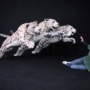 Die Karnevalsfiguren „Leoparden“ sind aus Maschendraht geformt, die Oberfläche mit Pappmaché beklebt.