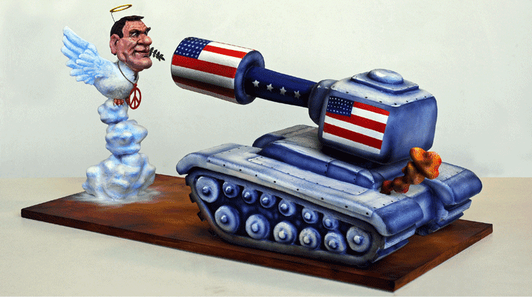 Kleinplastik Modell eines politischen Düsseldorfer Karnevalswagen für das Museum Haus der Geschichte der BRD in Bonn. Länge: 1 Meter / Höhe: 45 cmStyropor mit Pappmaché-KaschurEntwurf: Jacques Tilly