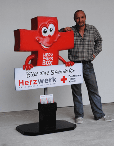 Die Werbefigur kommt im Rahmen des Projekt „Herzwerk“, welches von Jenny Jürgens in Zusammenarbeit mit DRK Düsseldorf ins Leben gerufen wurde, zum Einsatz.